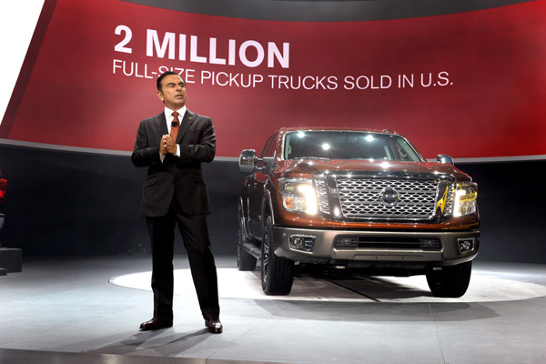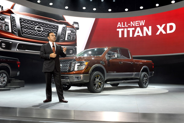 底特律(2015年1月12日)—在2015年北美國(guó)際汽車展,日產(chǎn)汽車向全球媒體發(fā)布了全新日產(chǎn)全尺寸皮卡TITAN。首發(fā)儀式由日產(chǎn)汽車公司總裁兼首席執(zhí)行官卡洛斯?戈恩主持,他表示:“隨著2016款日產(chǎn)TITAN XD的發(fā)布,我們不僅僅是朝著同級(jí)車中的佼佼者邁進(jìn)。實(shí)際上,我們正在創(chuàng)造一種新的車型類別”。