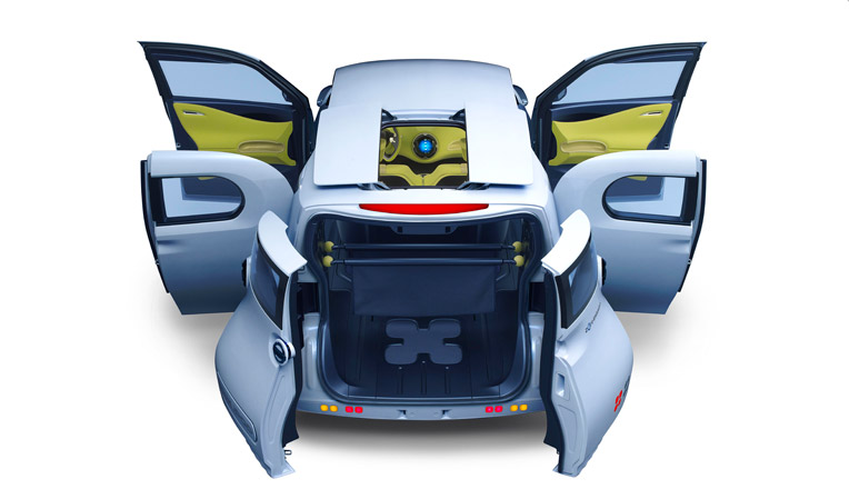 這款新型電動概念車功能靈活多樣,操作簡單,可以滿足駕駛員商業(yè)出行的多層次需求。由于取消了B柱且行李箱采用滑動門設(shè)計(jì),車門位置留出了更大空間,方便乘客上下車。便利的雙滑門設(shè)計(jì)方便搬運(yùn)貨物,后排座椅可滑動并折疊到前排座椅后部,從而創(chuàng)造了更為寬敞的內(nèi)部空間。